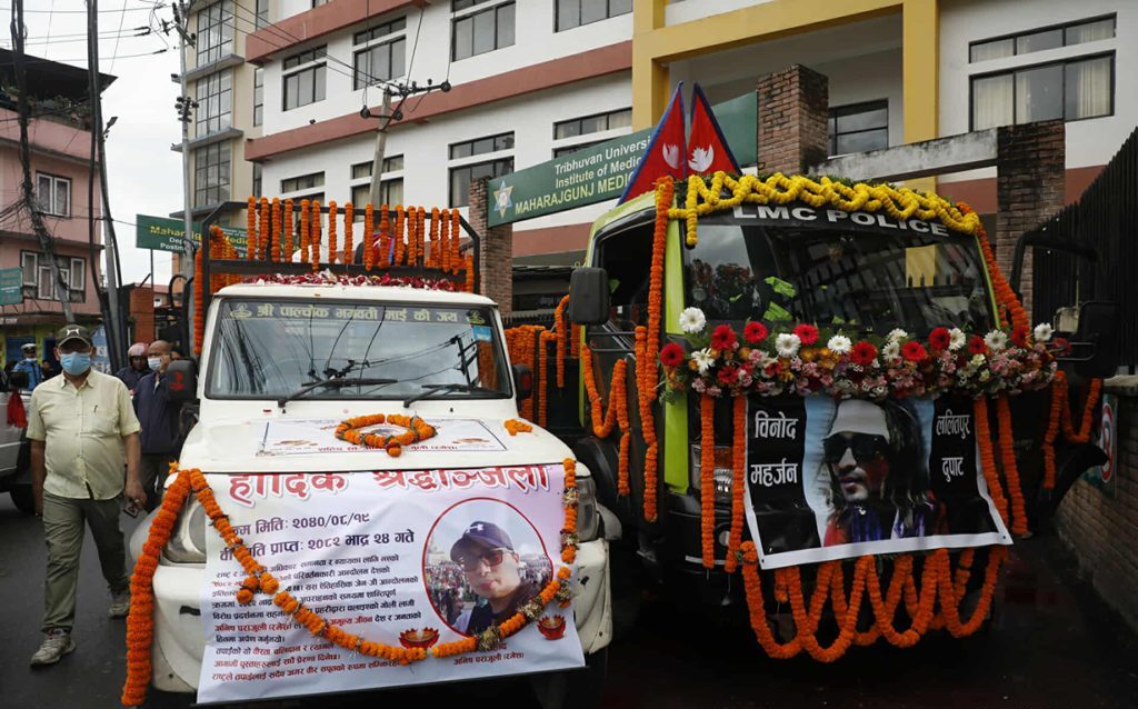काठमाडौं – जेनजी युवाको आन्दोलनमा ज्यान गुमाएकाहरुको आज राष्ट्रिय सम्मानसहित अन्त्येष्टि हुँदैछ । मृतकका परिवार र आफन्तले शवयात्रा निकाल्ने तयारी गरेका छन् । शवयात्रामा सहभागी भएकाहरुले मृतकका फोटो र राष्ट्रिय झण्डा बोकेका छन् भने उनीहरु शोकाकुल मुद्रामा देखिएका छन् । कतिपयले नि:सन्तानलाई के थाहा जेनजीको सपना ? भन्ने लेखिएको कपडाले शरीर ढाकेका छन् ।