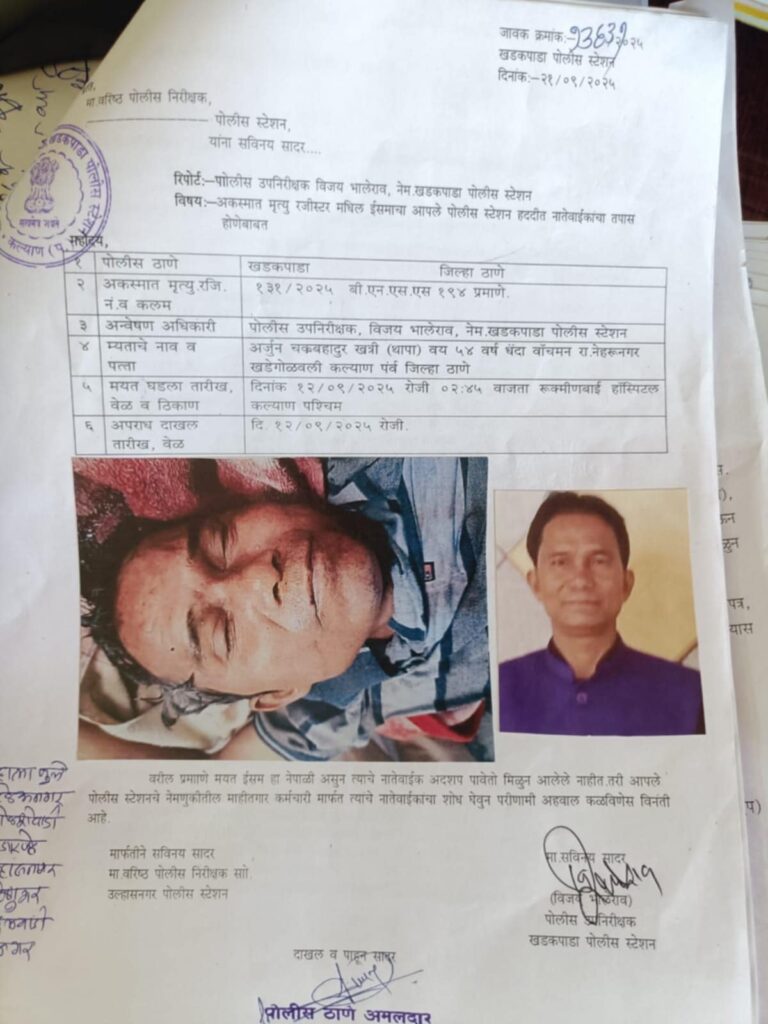 १२ सेप्टेम्बर २०२५ मा खडे गोलवलीमा अर्जुन चक्र बहादुर खत्री (थापा) नामका नेपाली नागरिक लावारिस अवस्थामा मृत भेटिएका हुन्। तर मृतकको नेपालस्थित ठेगाना खुल्न बाँकी छ।
